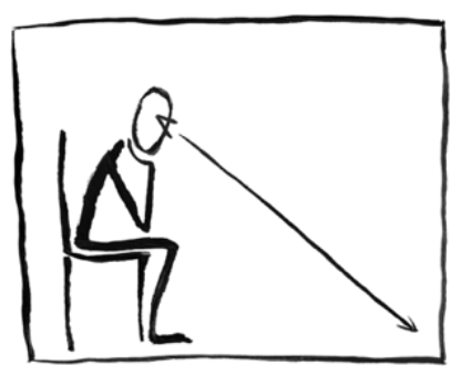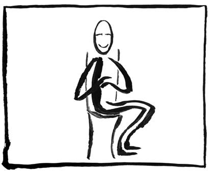 2. Es sich bequem machen; 1x tief und bewusst ein- und wieder ausatmen, sich beim Ausatmen schwer machen und die Augen schliessen.