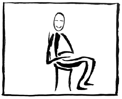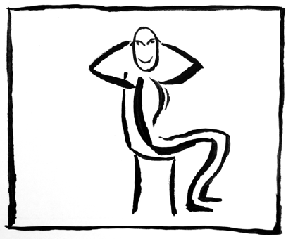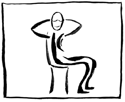 - Hände hinter dem Kopf verschränken und sich etwas zurücklehnen. –> Satz!